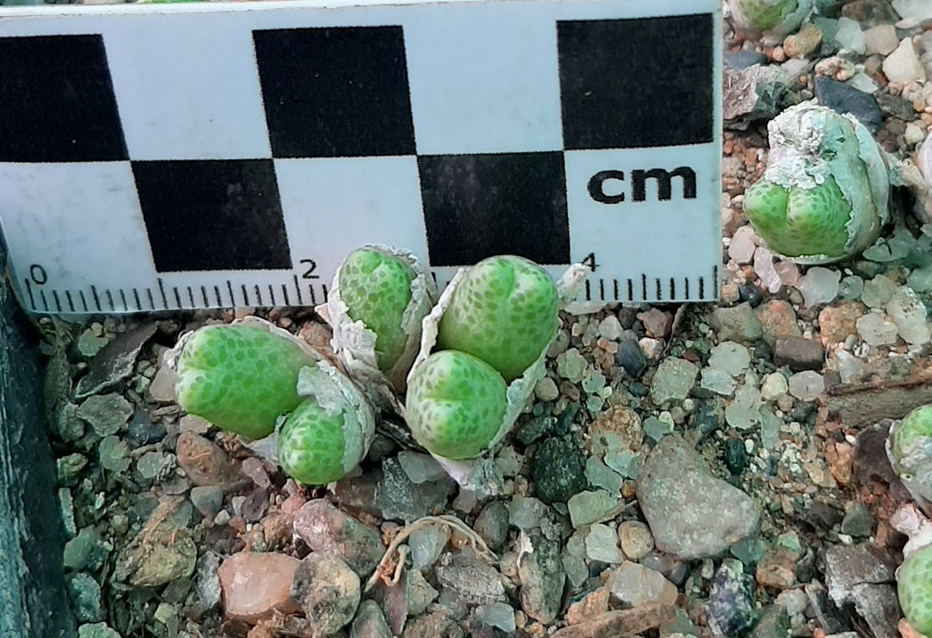A small, dome forming species with elongated heads producing pin flowers in autumn. This is the short lobed form. Each plant will contain a minimum of three heads. A summer dormant species growing actively during winter, we will provide you with detailed cultivation tips for successfully growing Conophytums.