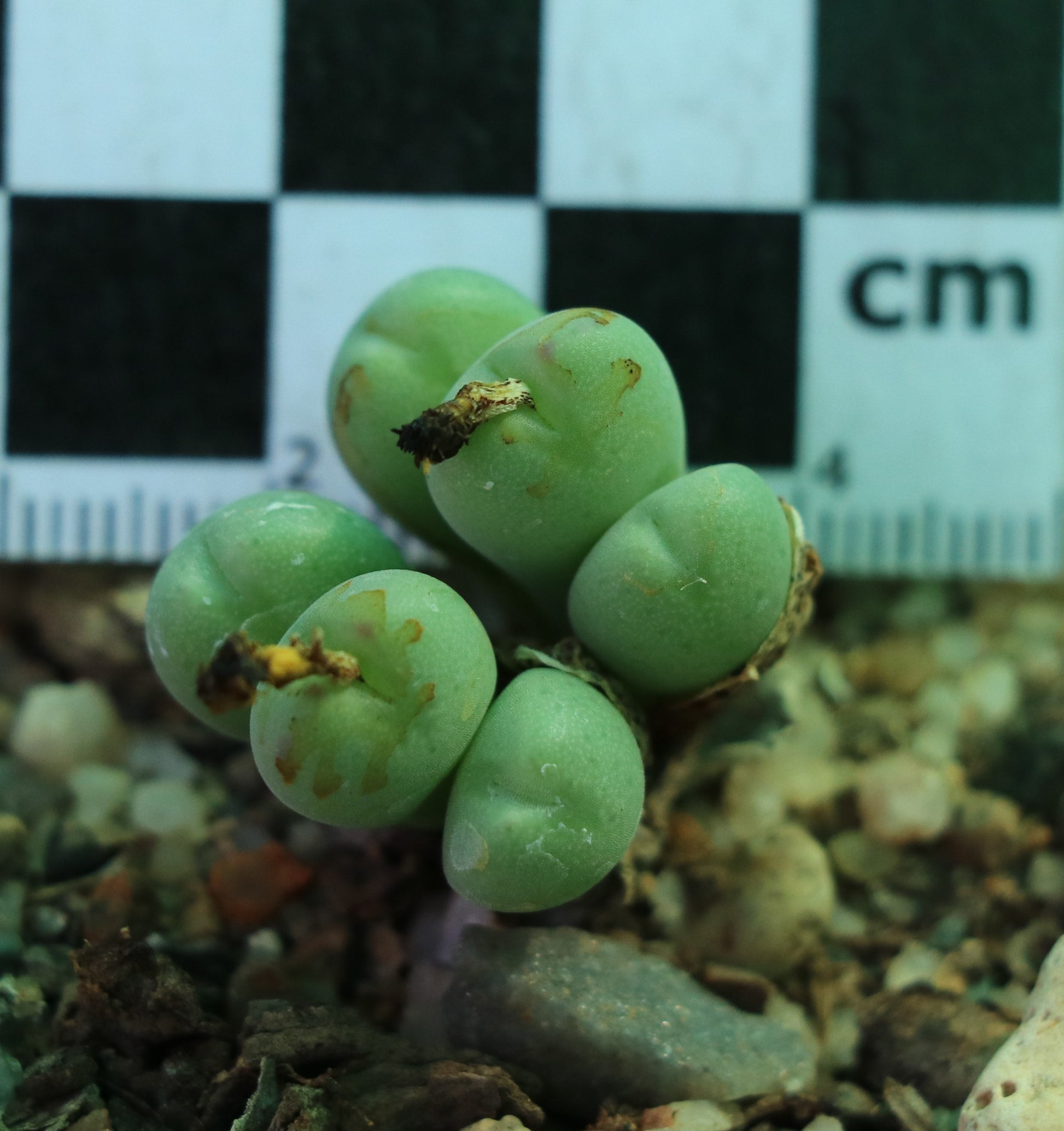 A small, dome forming species with rounded heads that can form a sizable dome over time (20 cm diameter). The small heads have a velvety feel and produces yellow flowers in autumn. Each plant will contain a minimum of three heads. A summer dormant species growing actively during winter, we will provide you with detailed cultivation tips for successfully growing Conophytums.