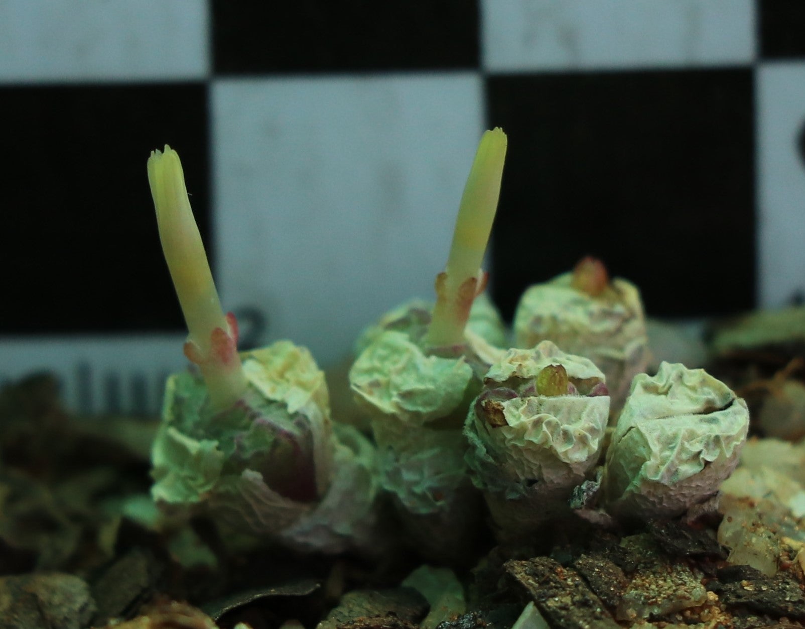 A truly dwarf species, which may reach a diameter of 10 cm over a period of more than 10 years. Small heads with reddish lines in strong sunlight. Produces small white or pink flowers in autumn. Each plant will contain a minimum of four heads. A summer dormant species growing actively during winter, we will provide you with detailed cultivation tips for successfully growing Conophytums.