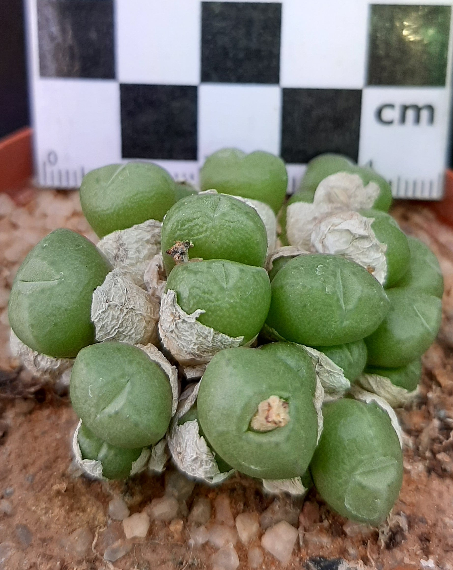 A small species forming little domes over time. Heads are round and smooth with small, pink, nocturnal and sweetly scented flowers in autumn. An easy species and each plant being a substantial cluster. Each plant will contain numerous heads. A summer dormant species growing actively during winter, we will provide you with detailed cultivation tips for successfully growing Conophytums.