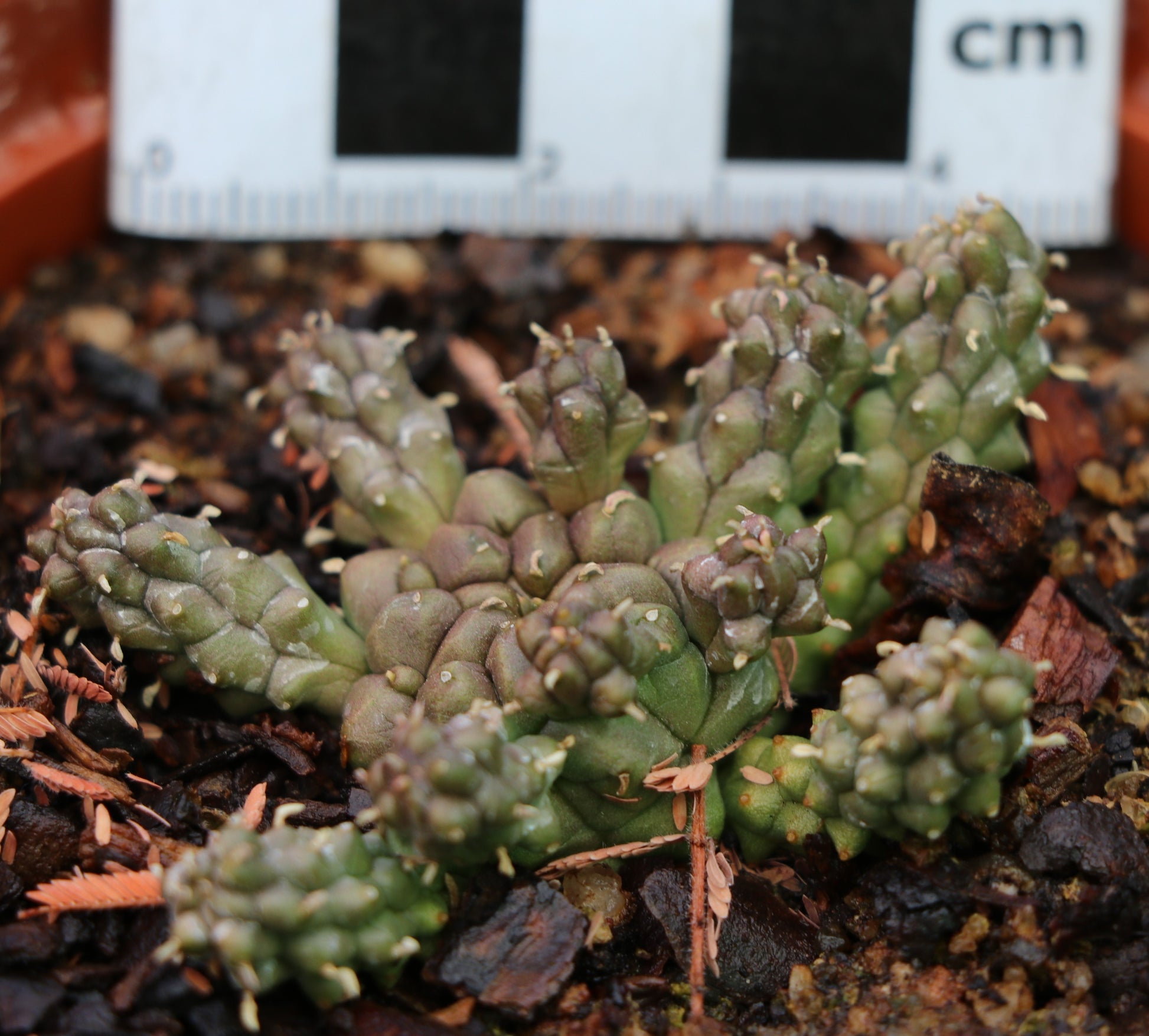 A slow growing, mound forming plant, which can form a dome up to one meter across. Produces a milky latex that may be poisonous. This species grows during the summer, can handle direct sun, lots of water and is well adapted to severe frost, it is ideally adapted to a highveld climate and can also be planted in the garden when large enough.