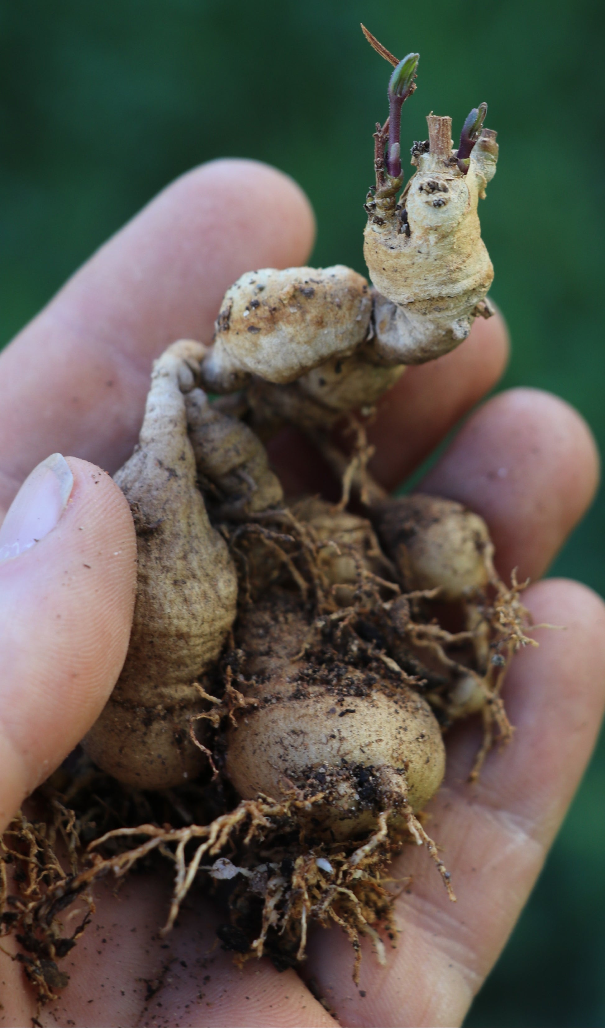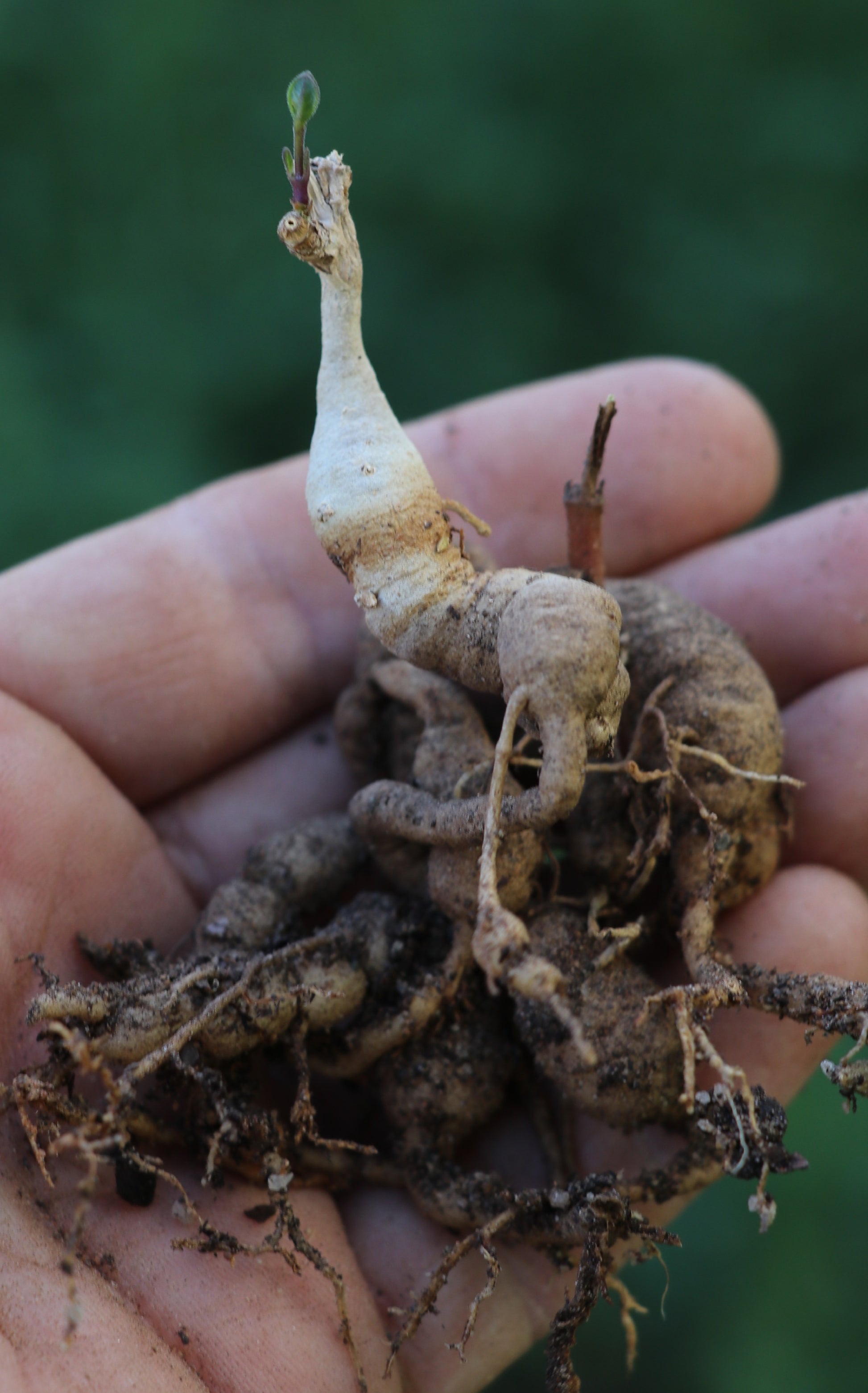 A caudex forming species, which can be grown partially exposed, the caudex can reach a diameter of 30 cm, producing annual leaves with small purple flowers. It grows naturally in the highveld region and can handle significant water during summer and can withstand very cold conditions. Best grown in partial sunlight, with ample watering in summer. Plants are seed grown, three year old seedlings and have started flowering. The caudex is currently approximately 5 cm in diameter.