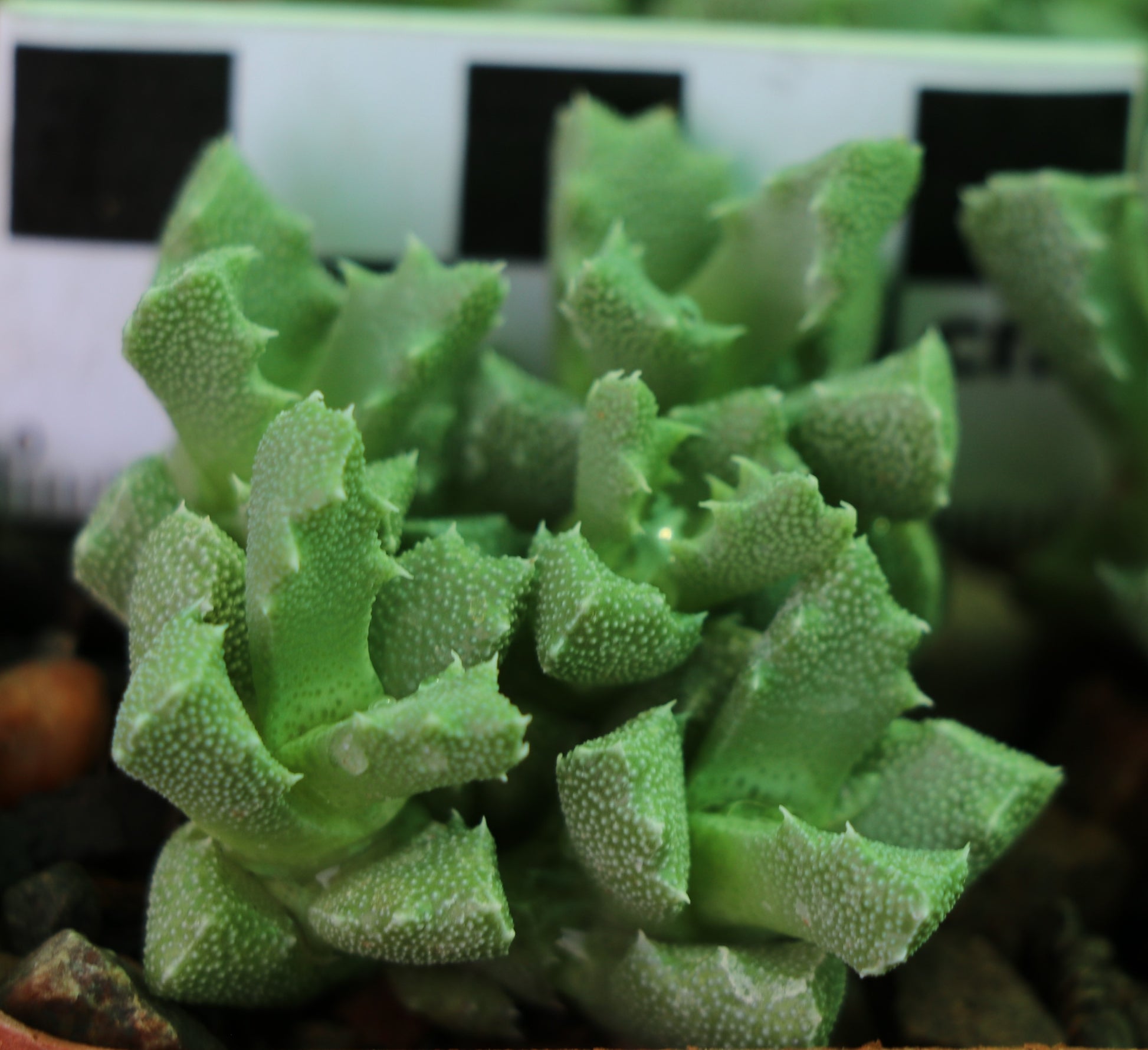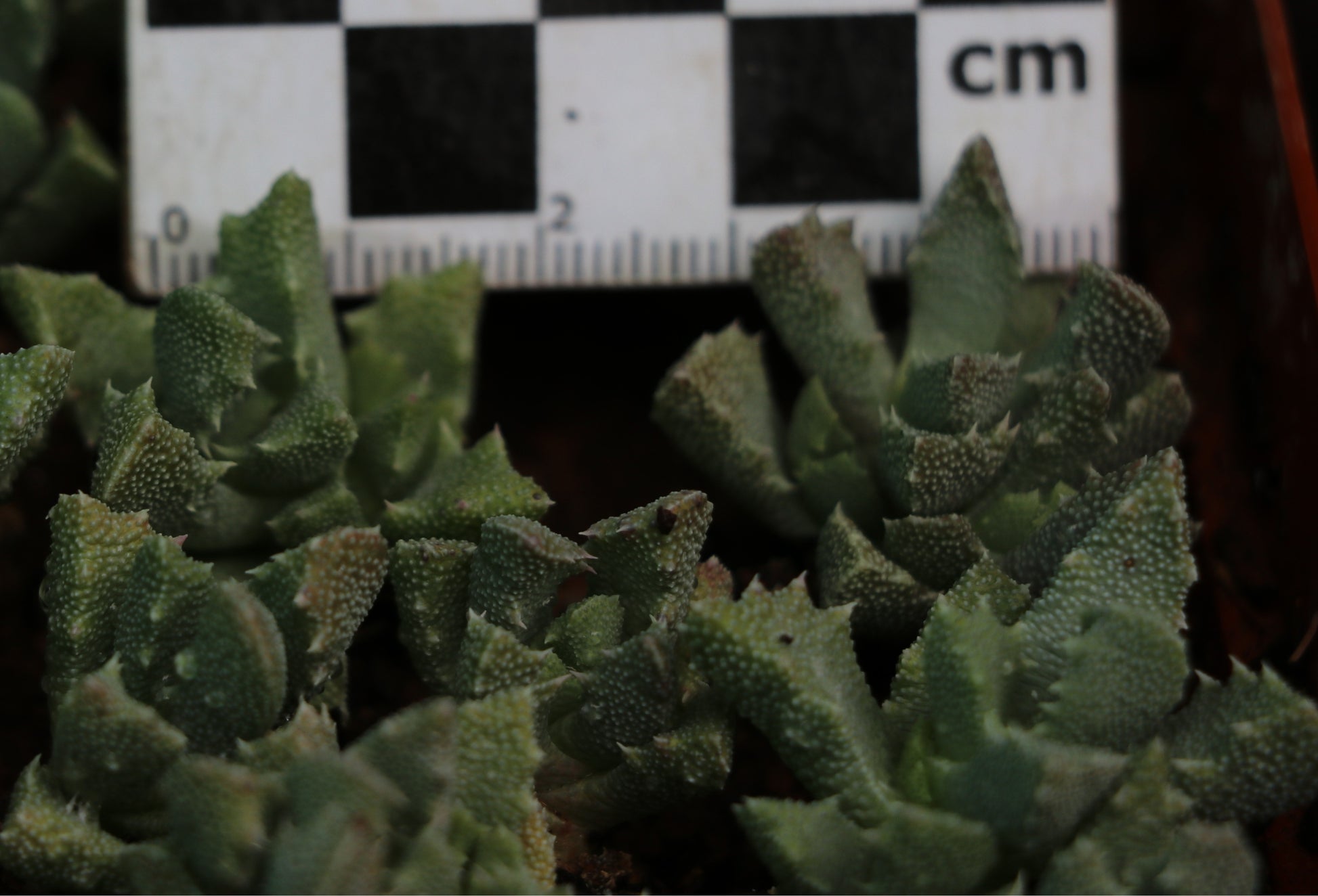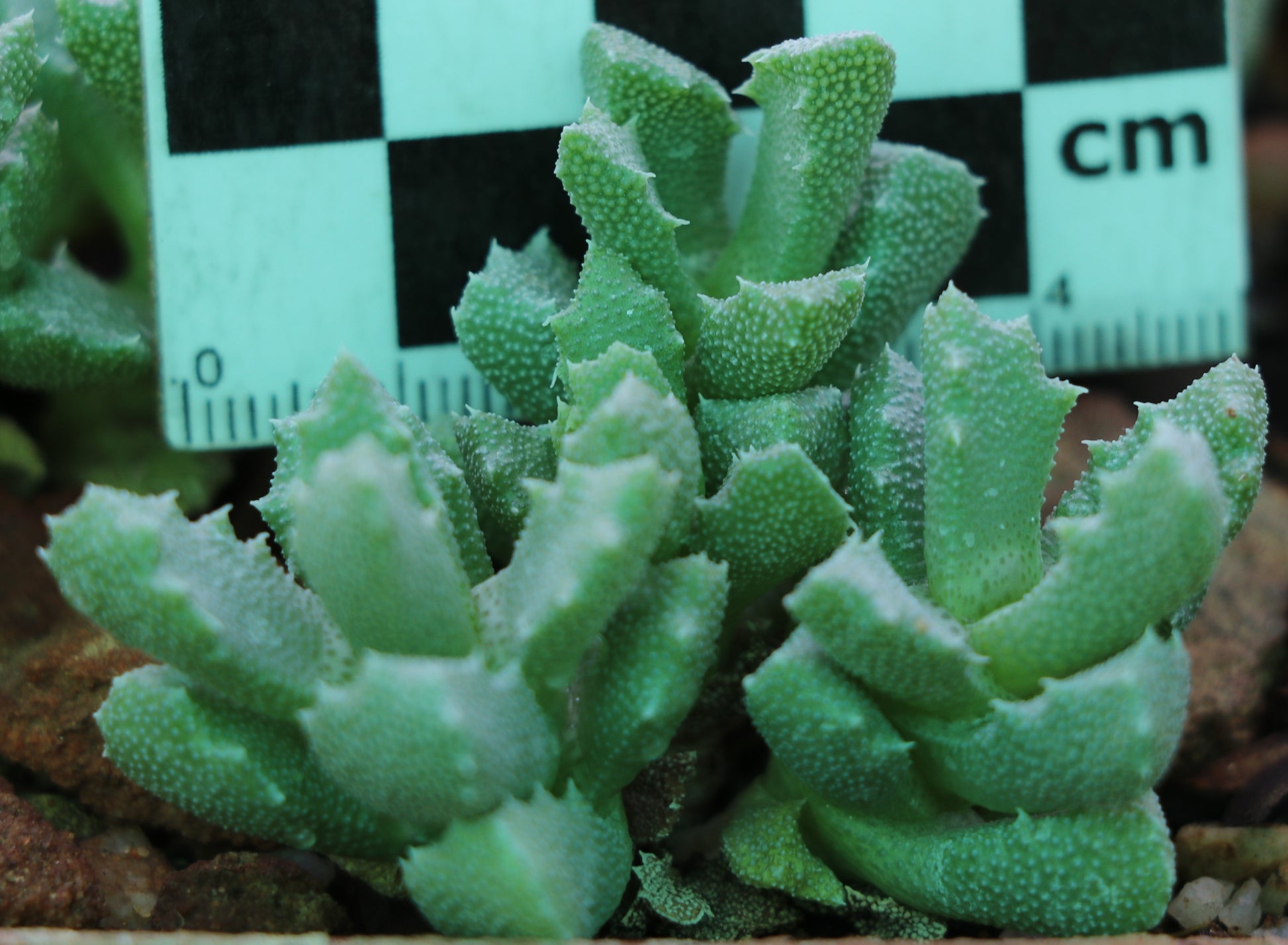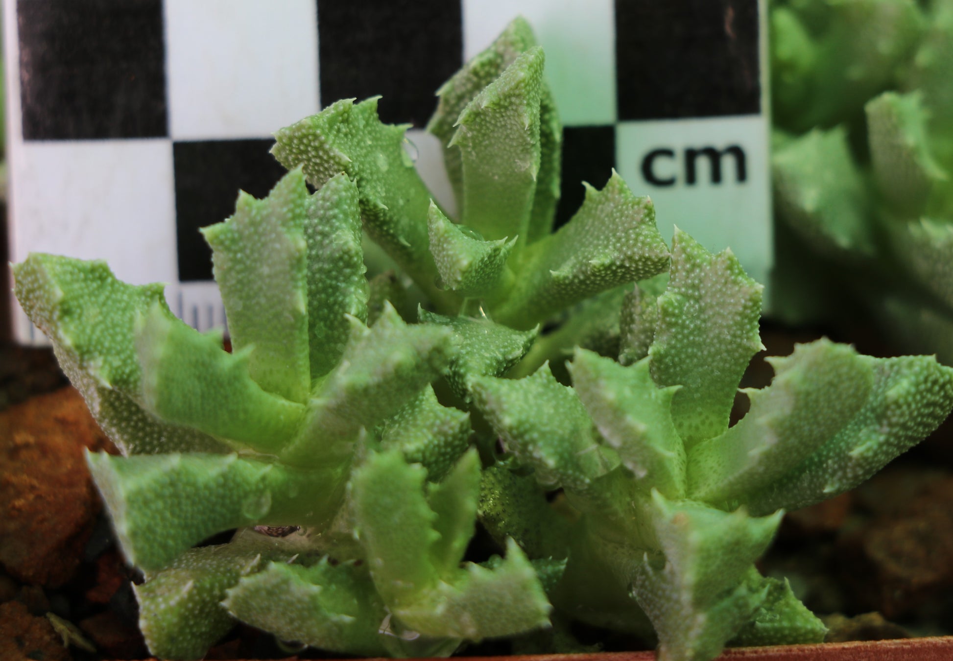 A small, clump forming species reaching a diameter of about 15 cm. This species has very toothy, rough textured leaves. It is easy to grow, benefits from bright sunlight, with light watering throughout the year. It can handle very cold conditions. Produces small, nocturnal and very sweetly scented flowers during spring. Plants being sold consist of a small, many leaved rosette.